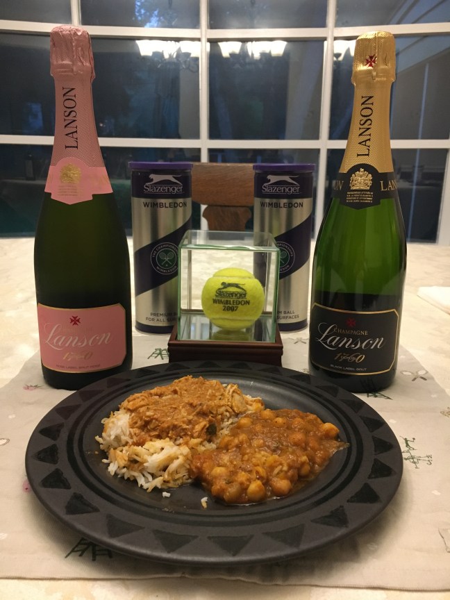 The women’s final is set! Venus is just one match away from another Wimbledon title. This is so exciting. And to celebrate what better than some Lanson Champagne, the official champagne supplier of Wimbledon. And we will have curry takeaway for dinner. I know, strange combo, but two of my faves.